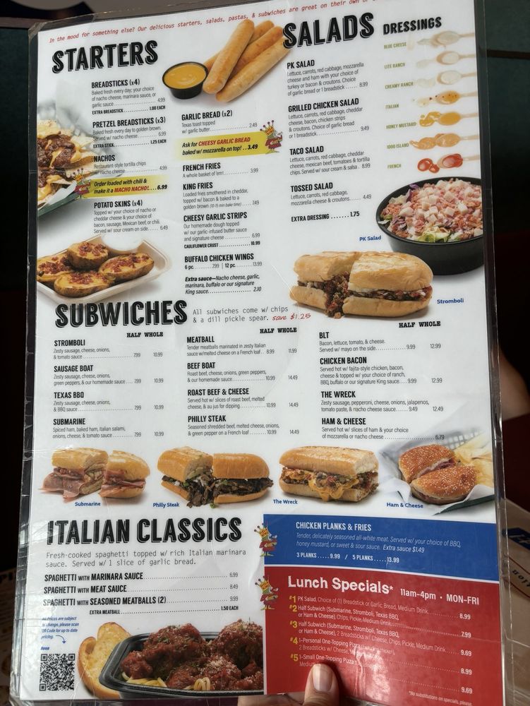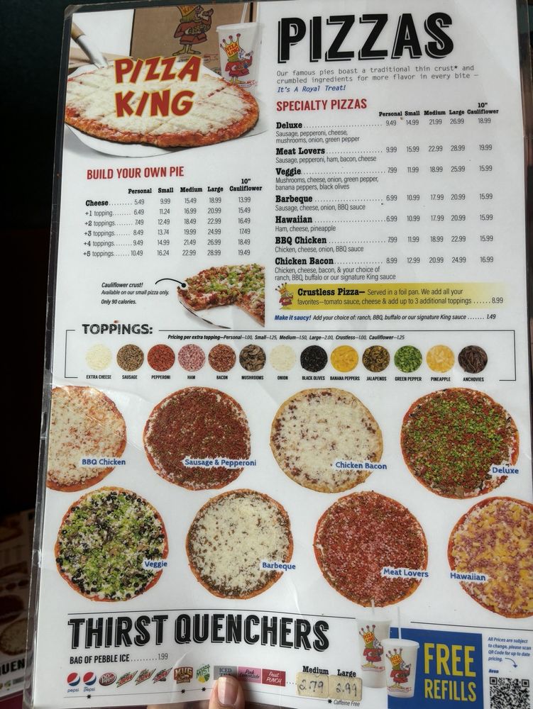Located in Avon, Indiana, Pizza King is a beloved local treasure that has been serving up delicious pizza for over 30 years. The revamped menu now offers classics alongside new additions like cauliflower crust, catering to a variety of tastes. Customers rave about the nostalgic charm of having their drinks delivered by a train, making it a hit for kids and train enthusiasts alike. The restaurant's cozy, divey atmosphere adds to the overall experience, making it a must-visit for families and pizza lovers. With a range of starters, salads, and unique offerings like crustless pizza, Pizza King - Avon has something for everyone. Don't miss out on the famous breadsticks and traditional pizza flavors that keep customers coming back for more. Visit Pizza King - Avon for a taste of local history and a unique dining experience.
